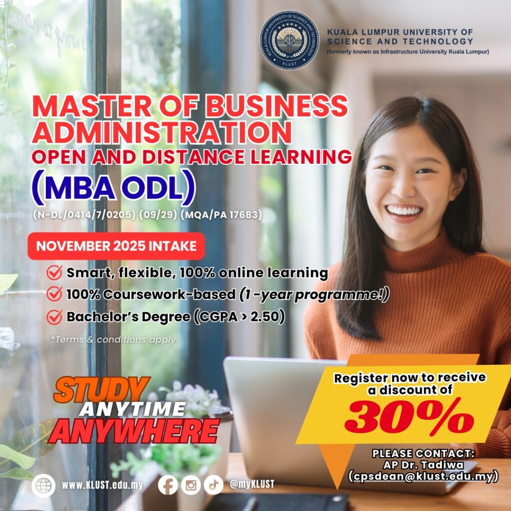 For more information, call 1800 88 STUDY (78839) or visit www.klust.edu.my