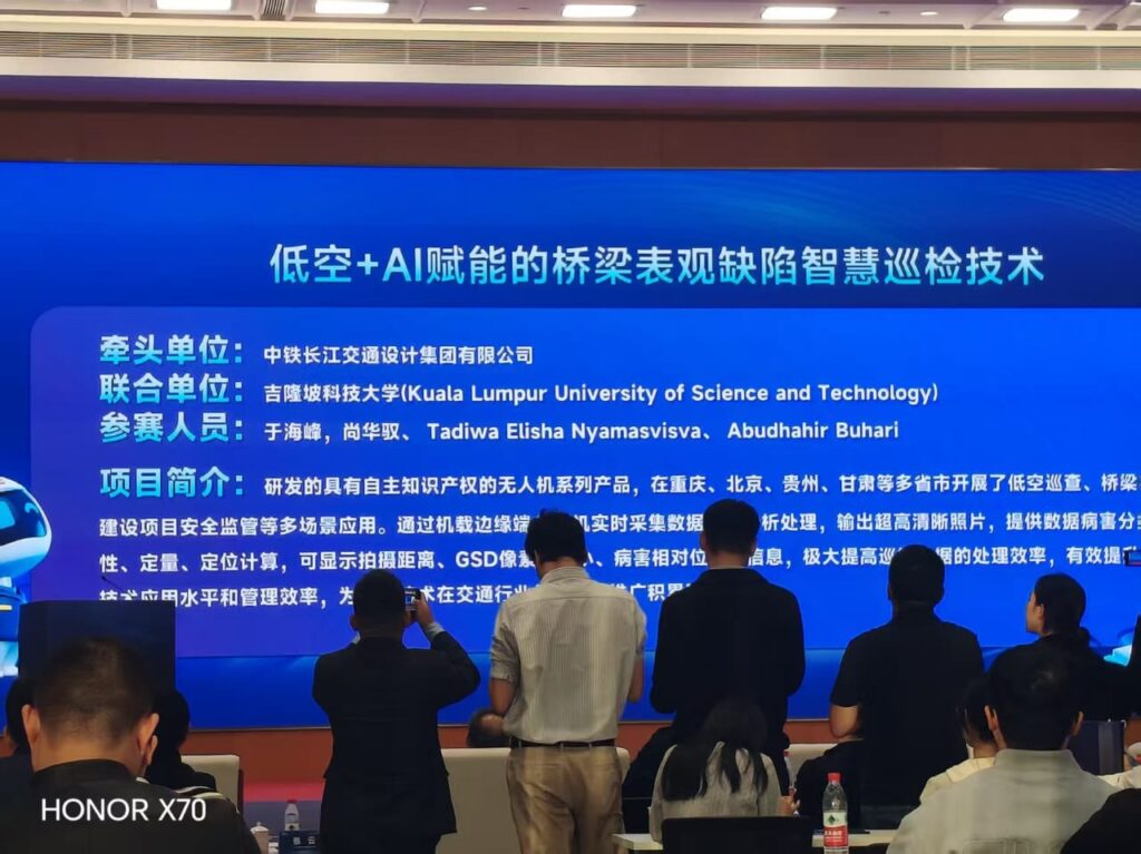 In the “AI + Low-Altitude Inspection” category, the joint team comprising lecturers from Kuala Lumpur University of Science and Technology (KLUST), led by Assoc Prof. Ts. Dr. Tadiwa Elisha Nyamasvisva, and China Railway Changjiang Transport Design Group Co., LTD., won the Gold Award for their project titled “Smart Bridge Surface Defect Inspection Technology Enabled by Low-Altitude UAV + AI.”