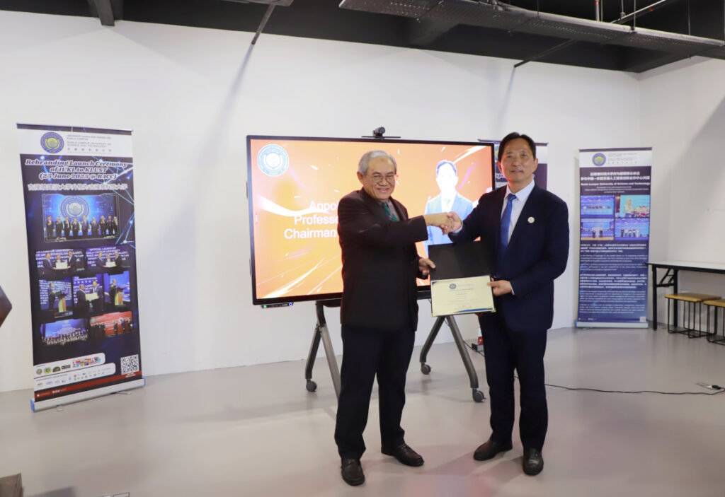 新年伊始,万象更新。1月5日,吉隆坡科技大学(KLUST)新年授衔与委任典礼圆满举行。全体校领导、师生代表齐聚一堂,共同见证这一重要时刻。丹斯里·Ghauth Jasmon教授正式受任为吉隆坡科技大学董事局副主席和全球学术专家委员会主席;董事局主席陈孝云教授获颁“实践教授”荣誉称号。此次授衔与委任不仅彰显了两位领军人物的卓越贡献,更标志着吉隆坡科技大学在产教融合、国际化战略与学术创新上迈出了坚实的步伐。