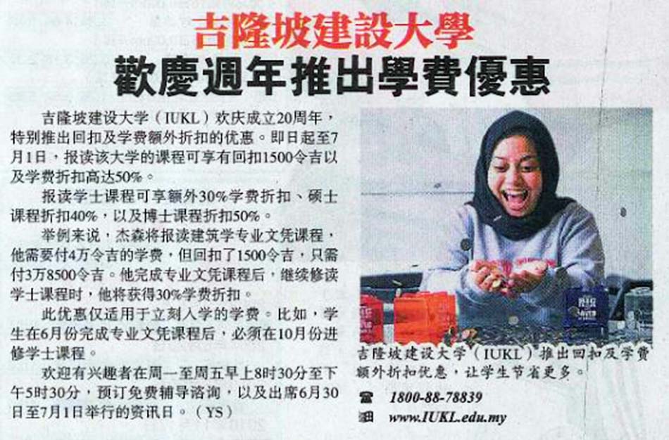 Home » News Clippings » 吉隆坡建设大学 欢庆周年推出学费优惠