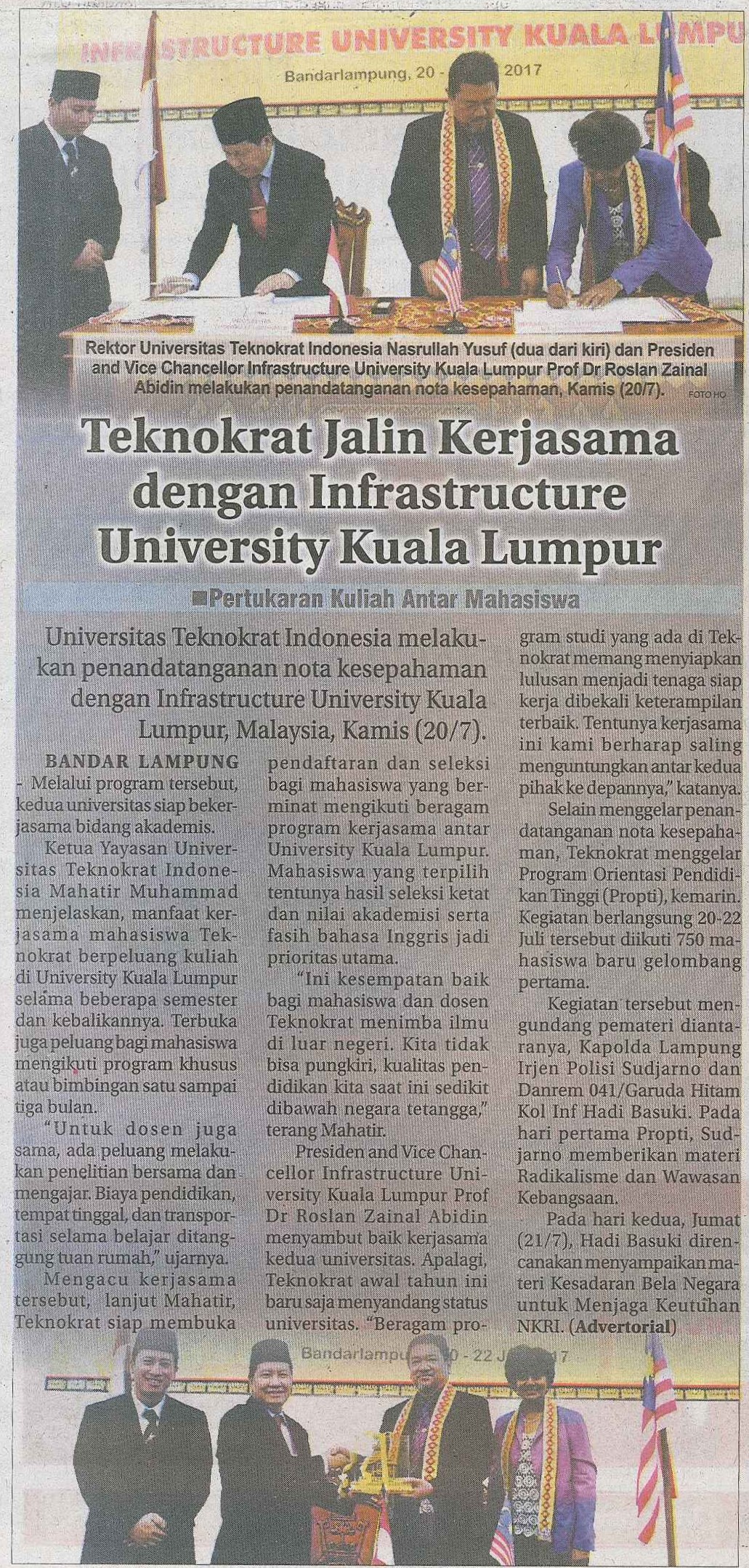 Title: Teknokrat Jalin Kerjasama dengan Infrastruktur University Kuala Lumpur