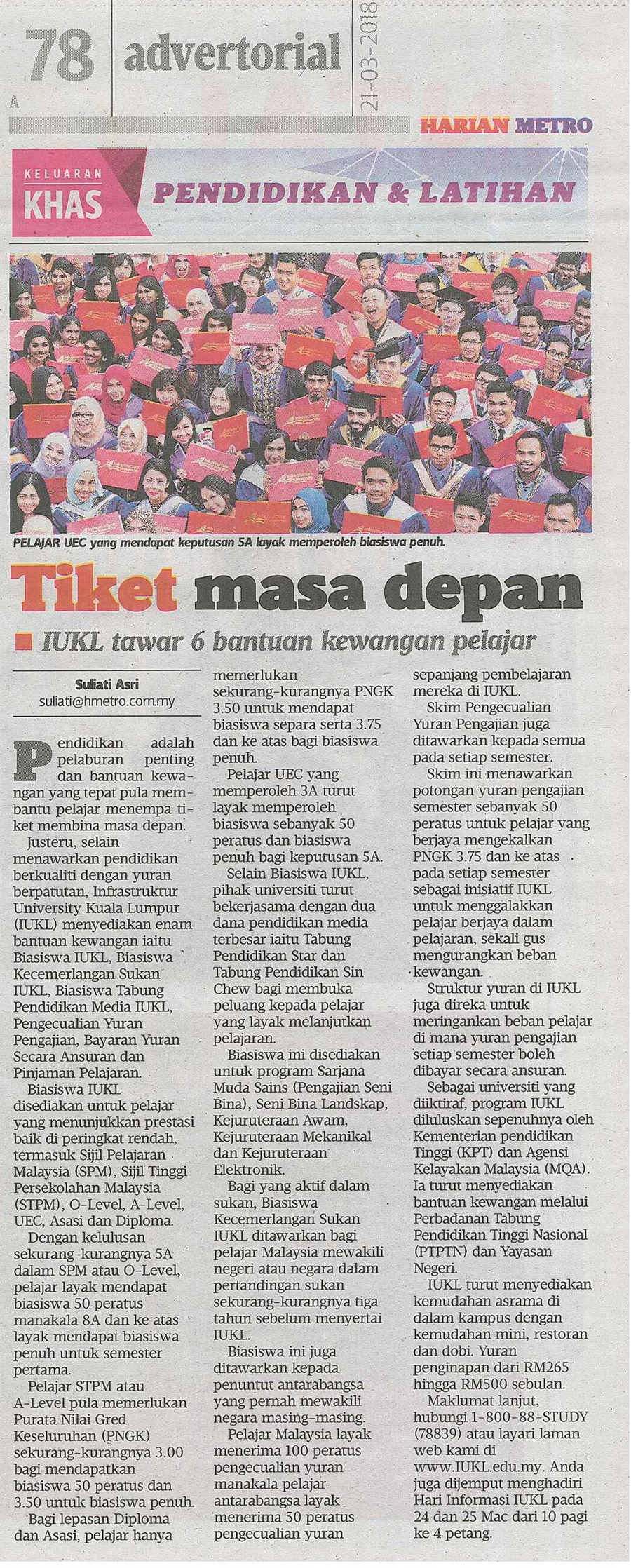 Source: Harian Metro: Advertorial: Pendidikan & Latihan